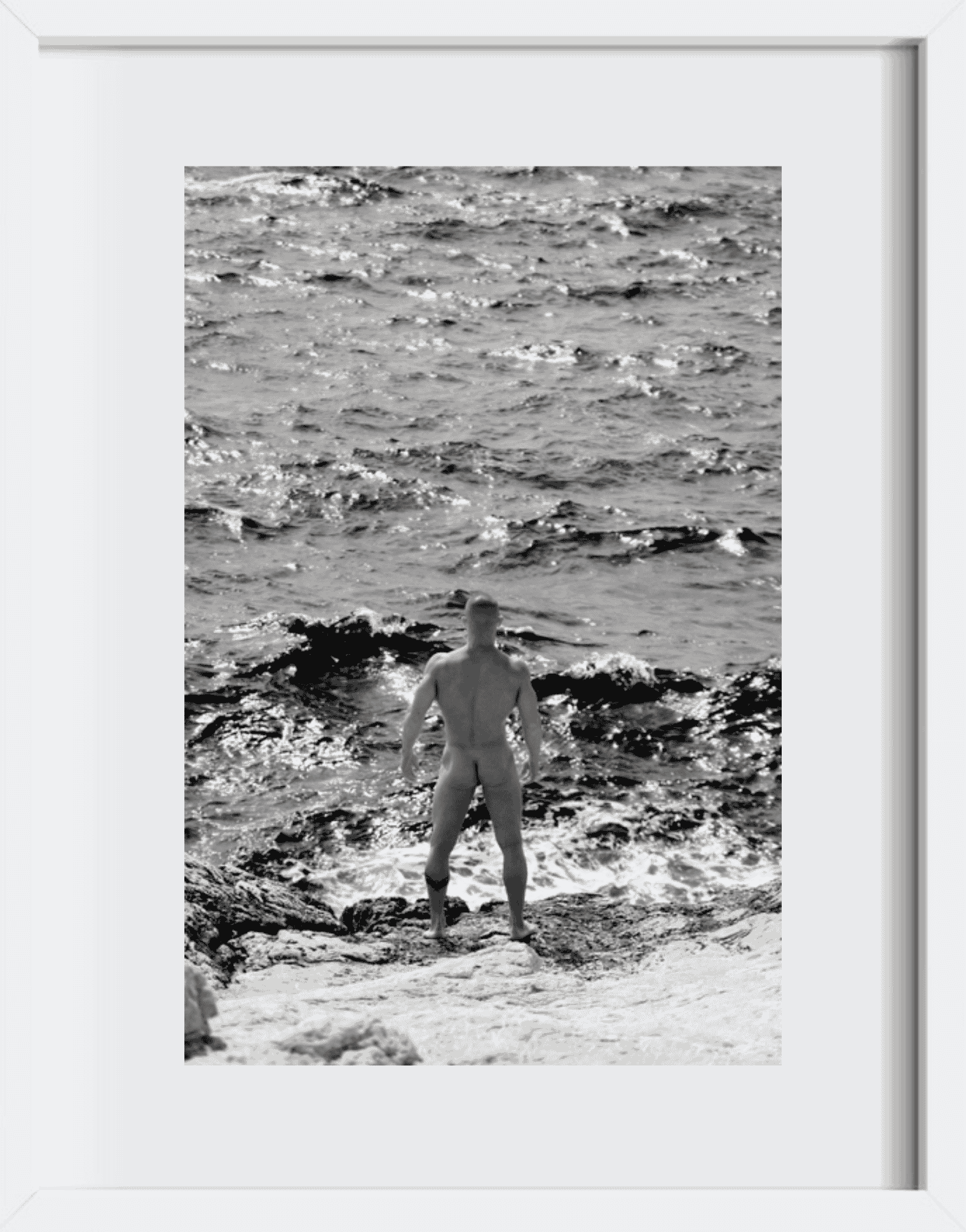 Bryan by Pierre Monnerville is a striking black-and-white photograph that celebrates the classical male form in a natural seascape. Shot in Marseilles, it features a naked man facing the sea, his back to the viewer. This perspective creates intimacy while inviting reflection. Pierre uses contrast and composition to turn a simple moment into a compelling study of body, emotion, and environment.