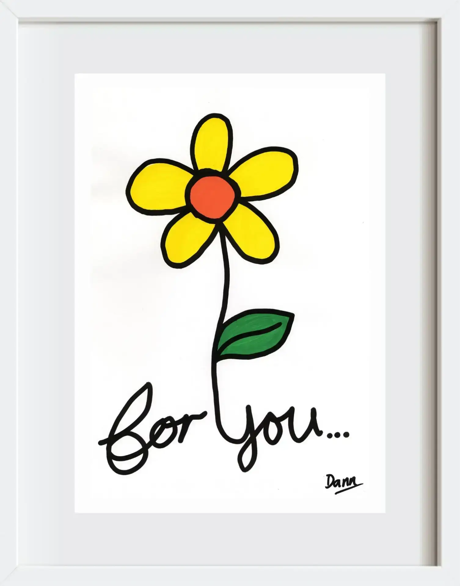 The Dann Taffs For You print is a minimalist yet powerful expression of love, kindness, and appreciation. At the centre of the piece sits a simple yellow flower, presented as a gift for someone special. Against a clean white background, the single bloom becomes a bold statement of thoughtfulness and care. Its purity and warmth evoke a sense of sincerity that words often fail to capture.