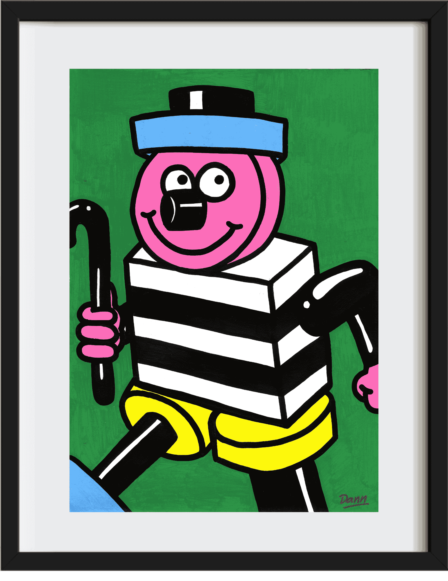 This print blends the artist’s love for pop culture and nostalgia with a subtle message about individuality and light-hearted self-expression. It’s playful, but also quietly confident—just like the candy man himself. The simple composition and vivid colour palette make it perfect for modern interiors, adding a touch of humour and energy to any wall.