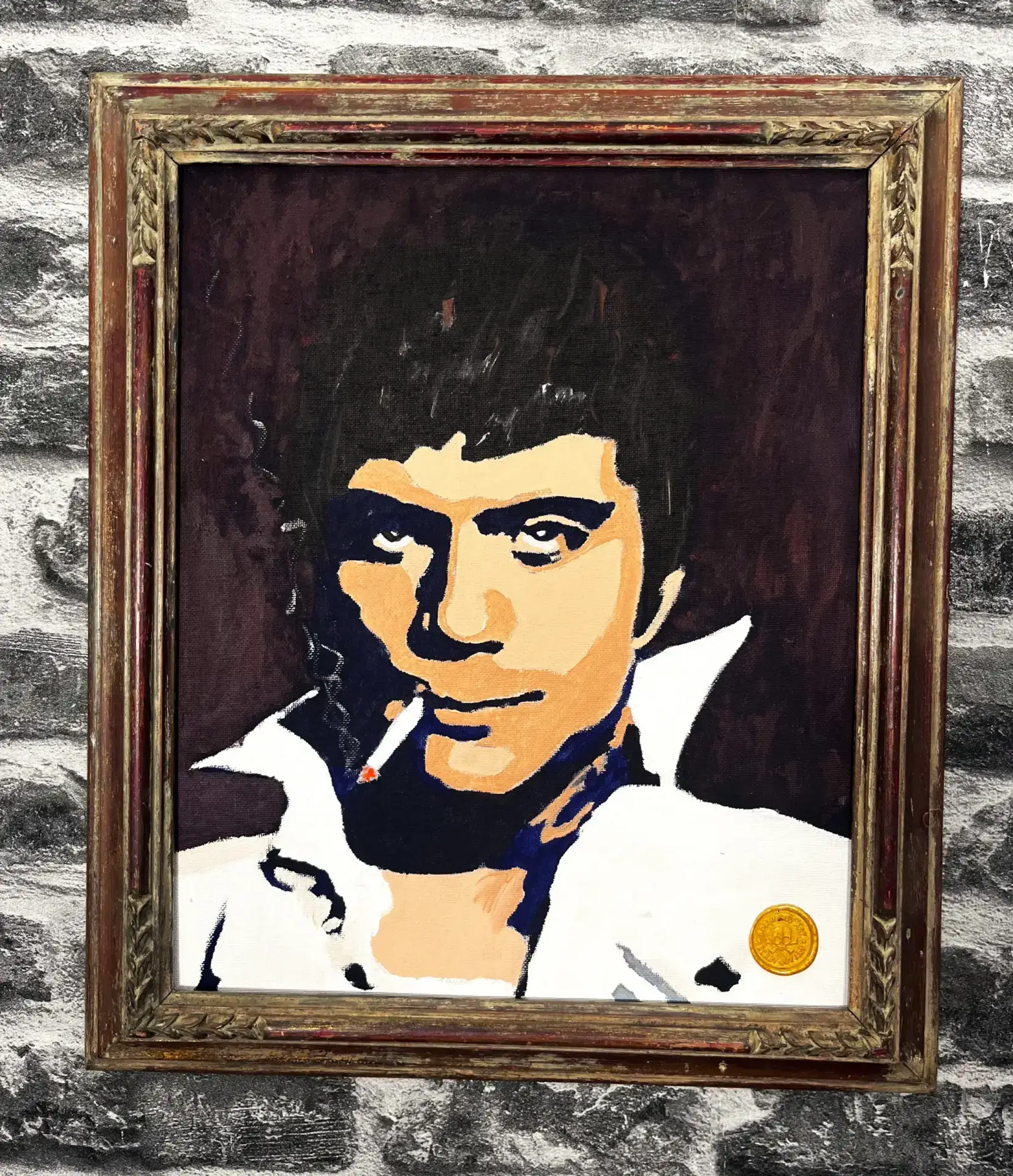 This gritty portrait of Oliver Reed captures the raw magnetism and untamed spirit of the legendary actor. Painted on canvas board with bold, expressive strokes, the artwork reflects Reed’s rugged charisma and infamous persona. The textured finish and rough edges give it a visceral, lived-in quality—just like the man himself.
