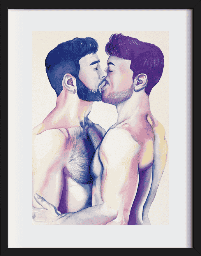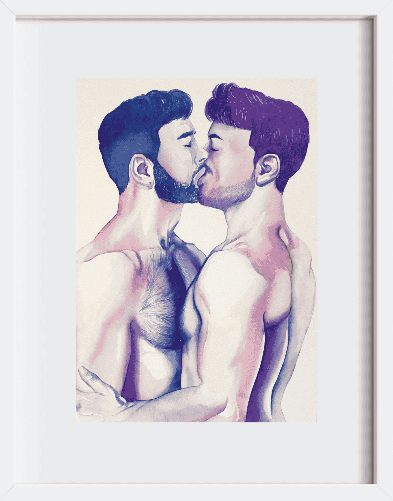 This limited-edition print is the final one available from the original painting. As such, it holds a special significance, offering collectors a chance to own a heartfelt tribute to queer love. The watercolour style adds softness and fluidity, enhancing the emotional depth of the scene.