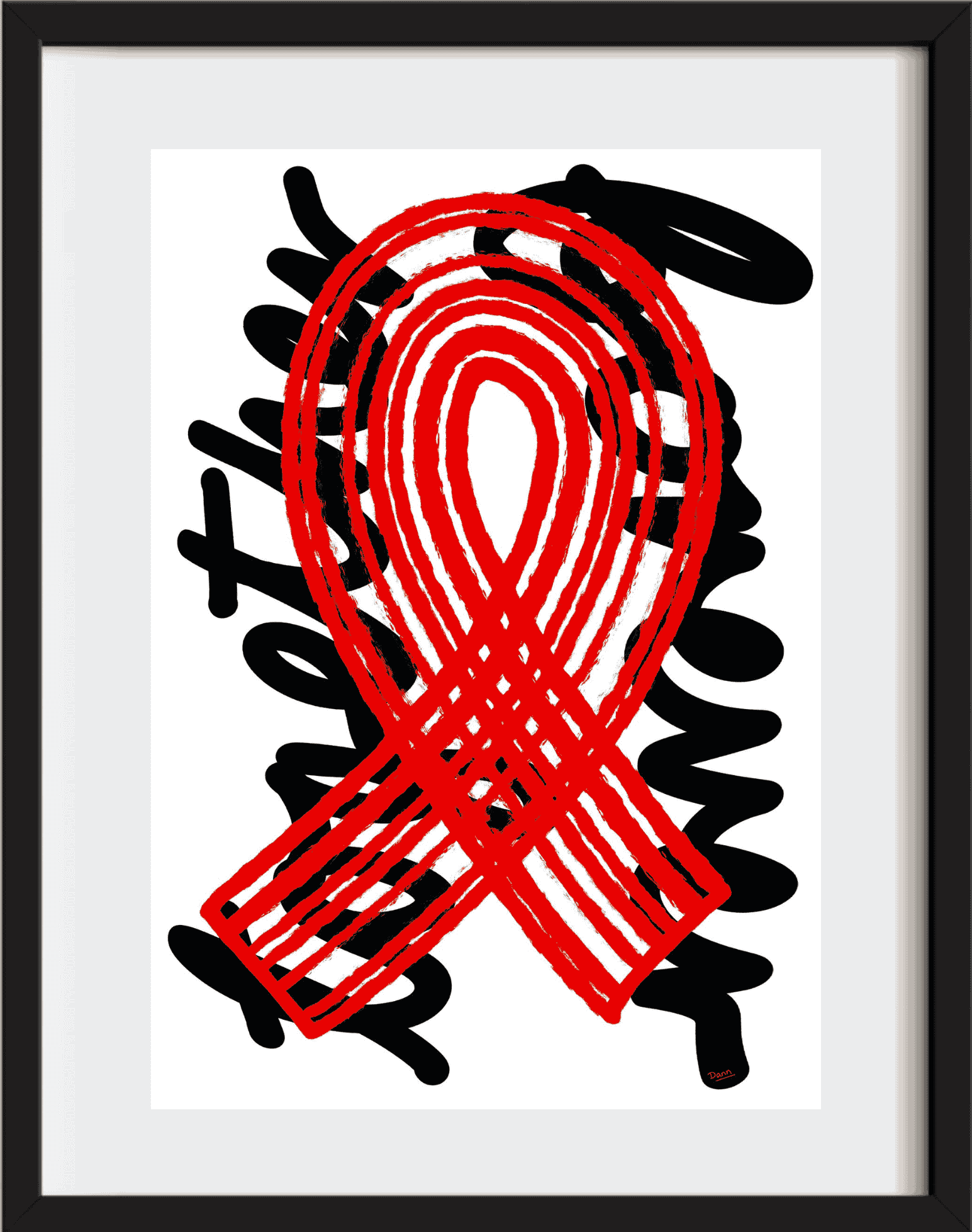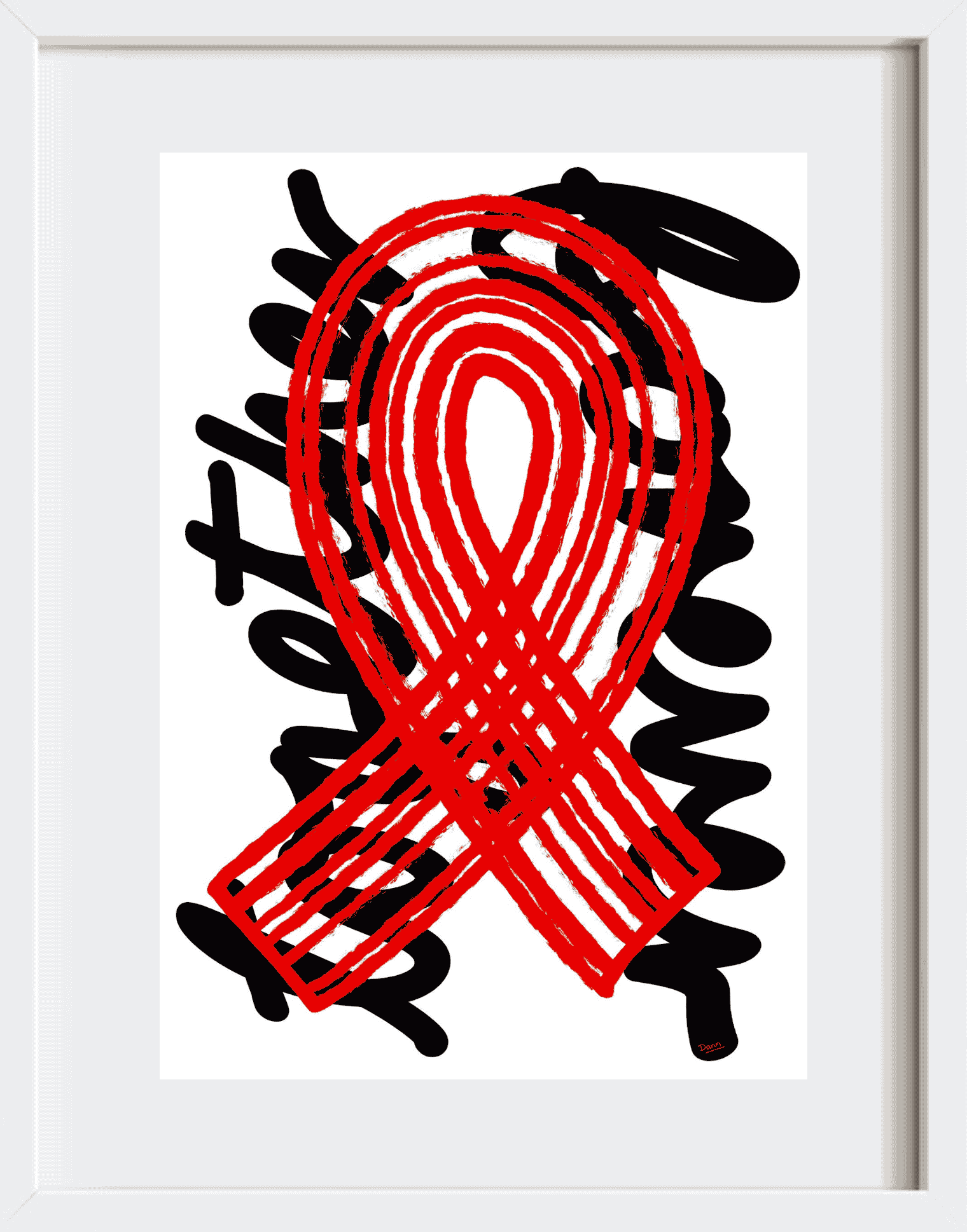 Created in Dann Taffs’ distinctive digital style, the artwork captures compassion through line and colour. The ribbon’s hand-drawn appearance gives it a raw, human quality, while the red hue symbolises passion, life, and resilience. Against the clean black text, the design becomes both powerful and poignant. Each element works together to remind us of endurance and solidarity, particularly within the LGBTQ+ community.