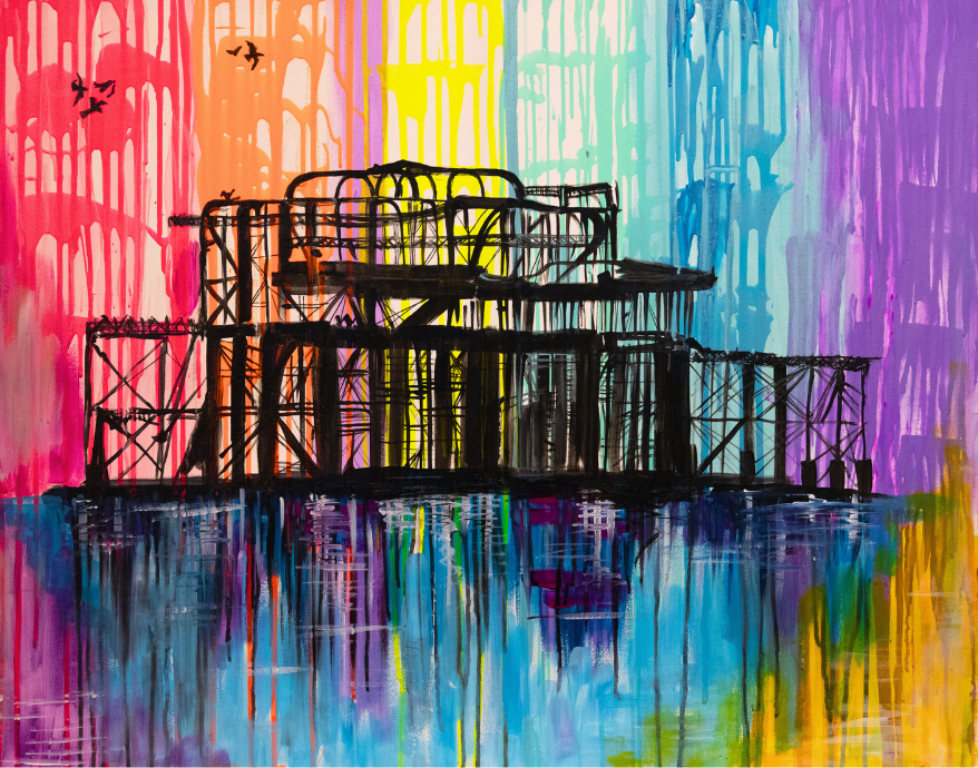 Celebrate Brighton’s iconic landmark with this vibrant West Pier A1 print by Emily Bowyer. The artwork places the historic pier at the centre, surrounded by a lively and colourful background. The bright tones bring energy and warmth, instantly lifting the mood of any room.