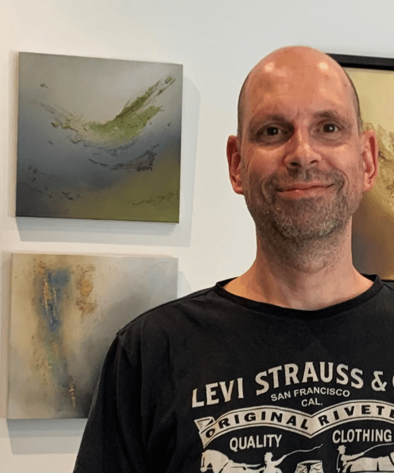 A self-taught artist, Chris draws inspiration from topography, aerial landscape photography, and the vast mysteries of space. These influences shape his distinctive style, where earthbound textures meet cosmic wonder. His paintings often explore contrasts—grounded yet expansive, familiar yet otherworldly.