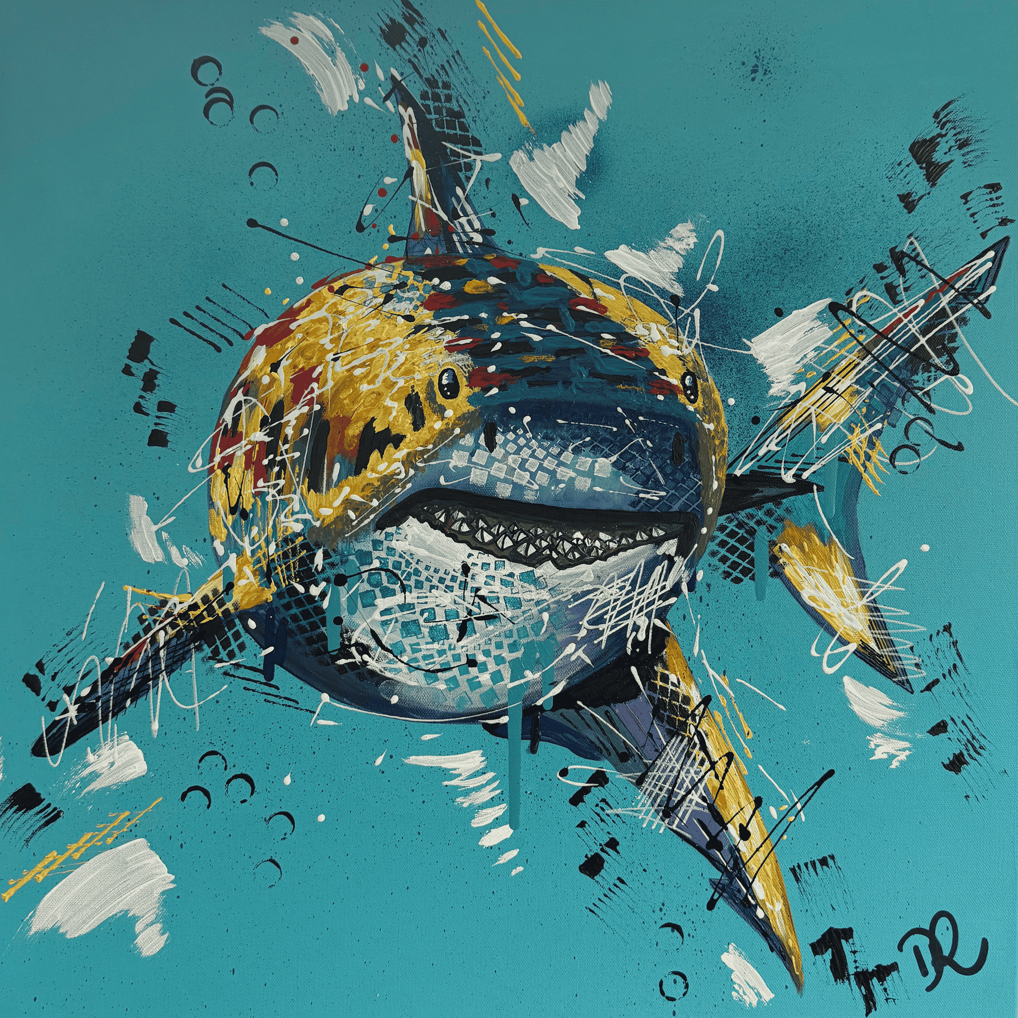 Her work is characterised by bold colours, dynamic textures, and an urban edge, offering a fresh perspective on animal art. Diana’s creative process thrives on experimentation, using acrylic paints alongside unconventional tools like cardboard stencils and everyday objects to infuse each piece with energy and character.