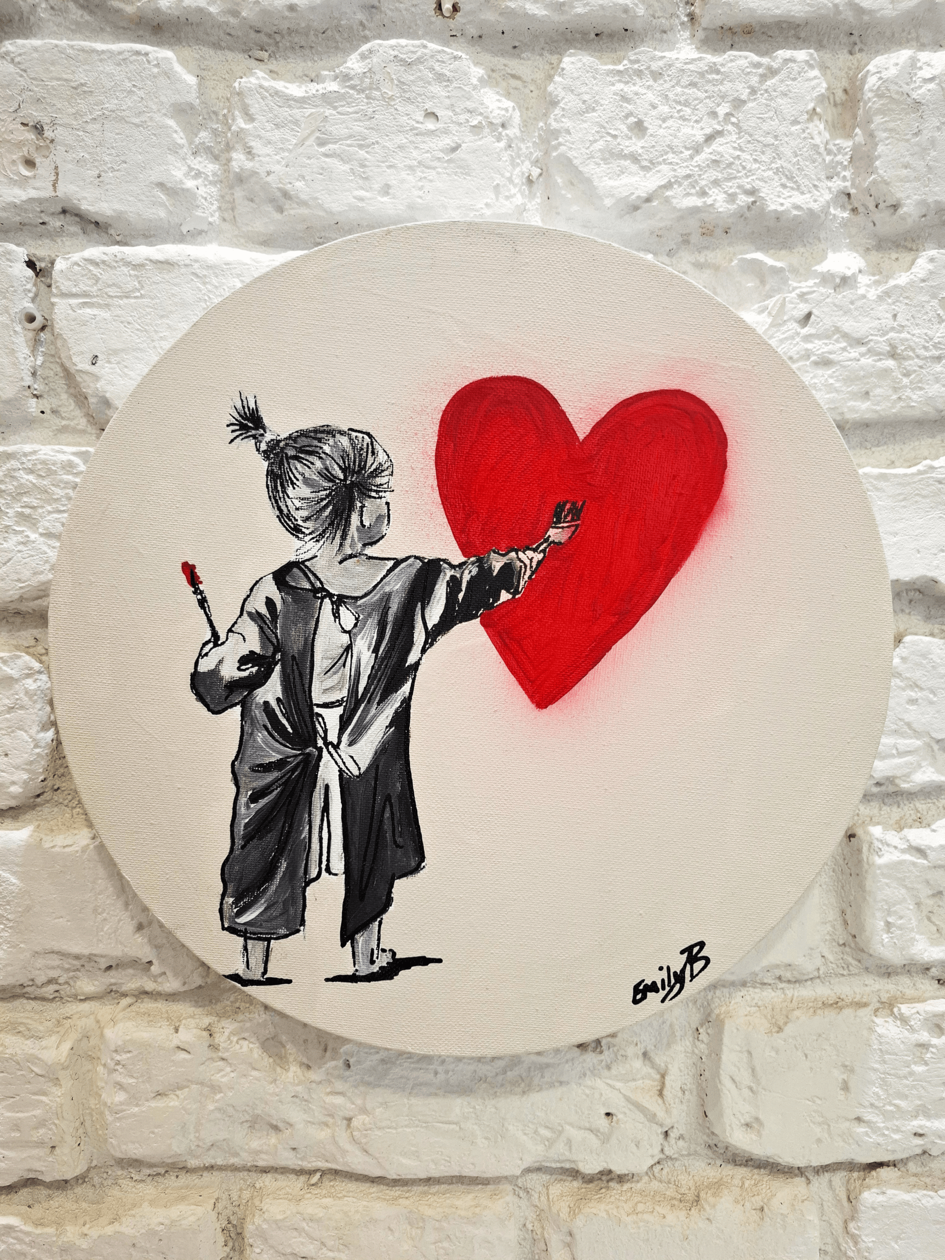 At the heart of Emily’s art is one simple yet powerful theme—LOVE. Her work captures energy, warmth, and emotion, offering pieces that are as visually engaging as they are meaningful.